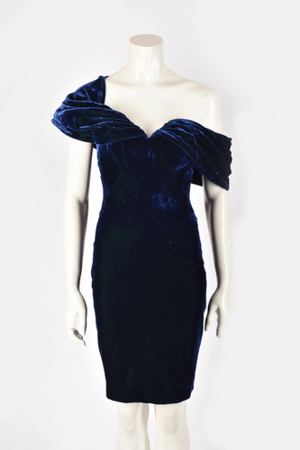 BALENCIAGA FALL 2020 RTW BLUE WRAP GOWN W/ GLOVES